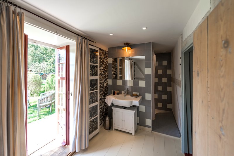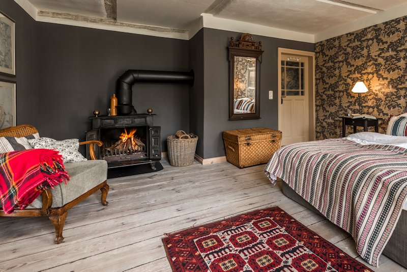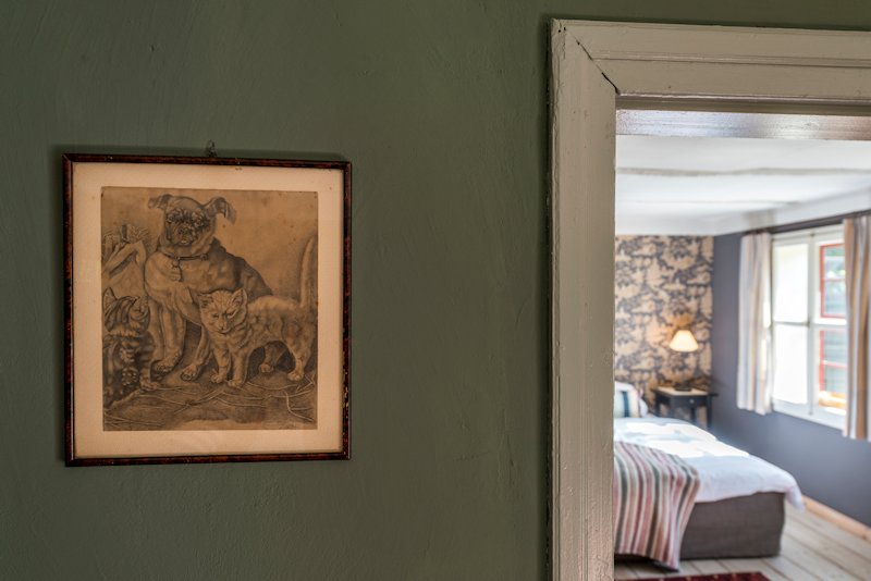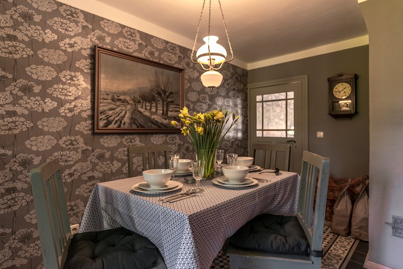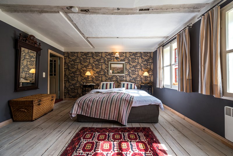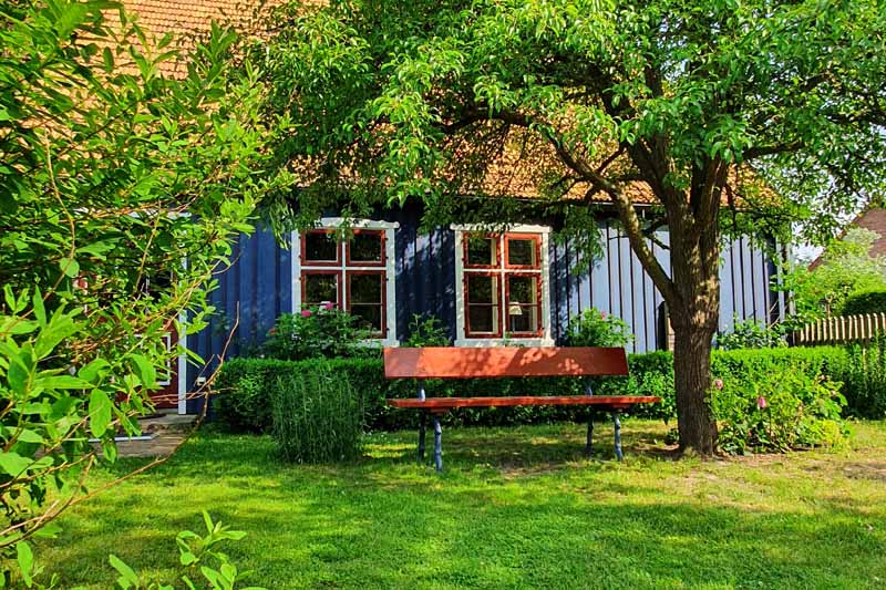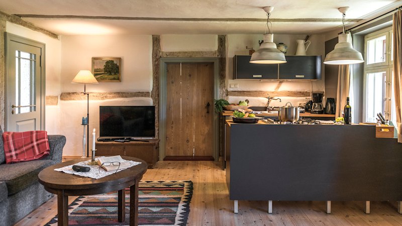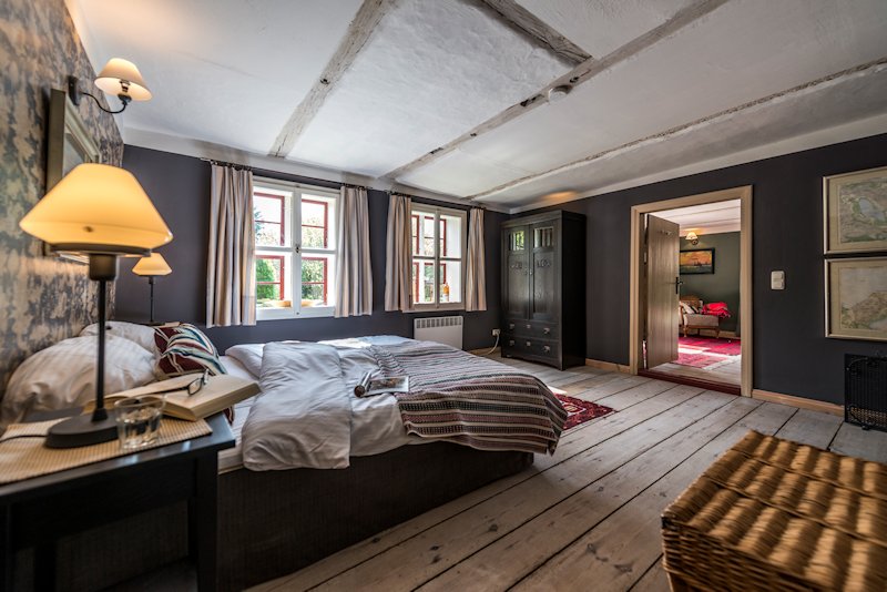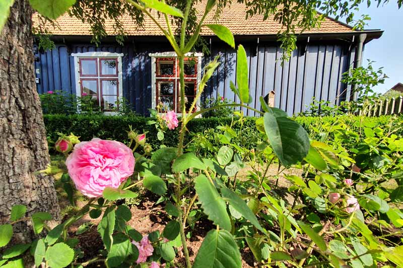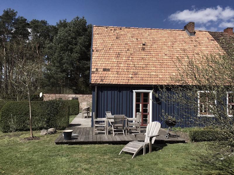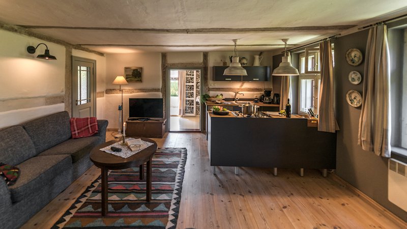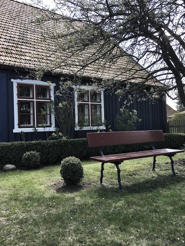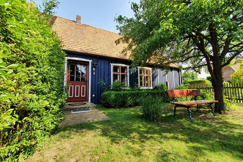 Haben Sie schon einmal Ihren Urlaub in einem 250 Jahre alten Haus verbracht? Lieben Sie blankgegriffene Türklinken, tiefe Balkendecken, die Struktur handgeformter Lehmwände, das Spiel von Licht und Schatten auf gelaugten Dielen und antiken Möbeln? Dann lassen Sie sich von fast 100m² Geschichte im Colonistenhaus verzaubern. Bei unserem mit viel Liebe sanierten Fachwerkhaus aus dem Jahr 1757 wurde ganz besonders darauf geachtet, den ursprünglichen Charme eines historischen pommerschen Gebäudes zu bewahren und dabei viel Wert auf ökologische Materialien wie Lehm, Holz und Naturfarben gelegt. So haben wir das Haus mit der für diese Häuser typischen Holzfassade aus heimischer Fichte versehen. Das Dach wurde 2016 mit wunderbaren, historischen Tonziegeln eines Abbruchgebäudes im Nachbardorf neu gedeckt. Die zum Teil noch barocken Kastenfenster wurden aufwendig restauriert oder da wo möglich durch helle, bodentiefe Fenstertüren komplettiert, sodass direkte Zugänge zur umlaufenden großen Holzterrasse geschaffen wurden. Die urgemütliche Atmosphäre der Räume, mit niedrigen Balkendecken, edlen Tapeten und Zementfliesen, Fachwerkwänden, den antiken Schränken und Kommoden wird Sie verzaubern. Hier sorgt ein antiker Lübecker Kachelofen im Winter für wohlige Wärme. Außerdem wurde eines der beiden Schlafzimmer mit einem gusseisernen Franklin Ofen ausgestattet, der hier nun auf Wunsch für ausgesprochen romantische Abende sorgt.