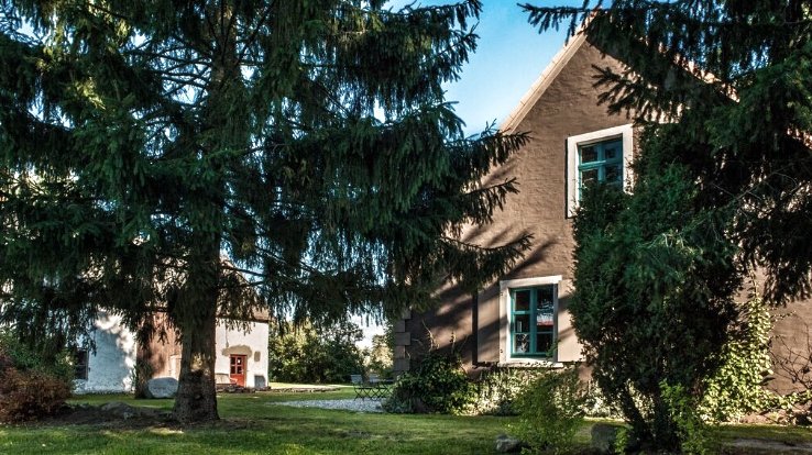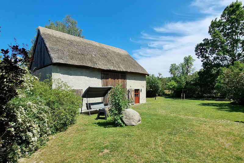 Mitten im Naturpark „Am Stettiner Haff“ und am Rande des Naturschutzgebiets Ahlbecker Seegrund liegt unsere romantische Hofstelle aus den ersten Jahren des vergangenen Jahrhunderts auf einem großen, umzäunten Grundstück. Der Hof besteht aus einem von Linden und Fichten umgebenen Haus mit gepflegtem, buchsbaumumsäumten Vorgarten, einer daran anschließenden reetgedeckten Scheune und einem dazwischen liegenden und von Wildhecken begrenzten grünen Hinterhof.