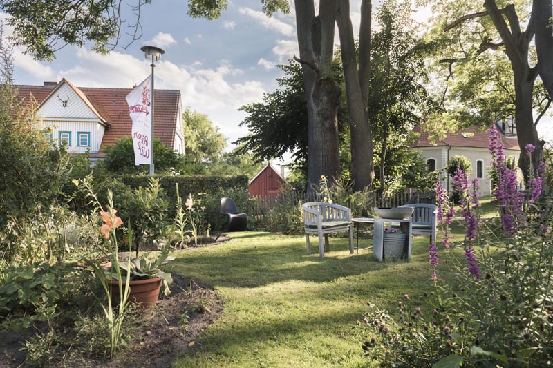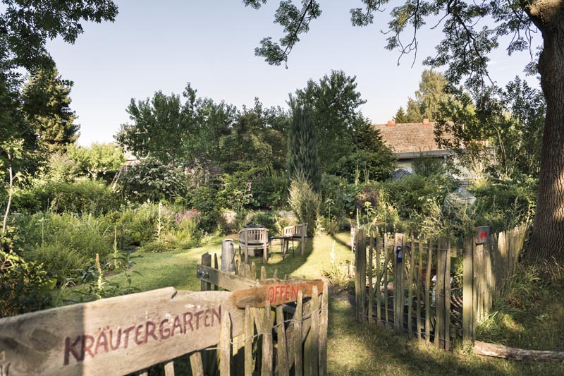 Der Kräutergarten zeichnet sich durch seine idyllische Lage am markantesten Ort des kleinen Dorfes Rieth aus – an der Schlossallee, einem wunderbaren Ensemble bestehend aus Schloss, der dazugehörigen, denkmalgeschützten Lindenallee, der Riether Dorfkirche von 1731 und dem denkmalgeschützten, ehemaligem Forsthaus aus den 30er Jahren des 20. Jahrhunderts.