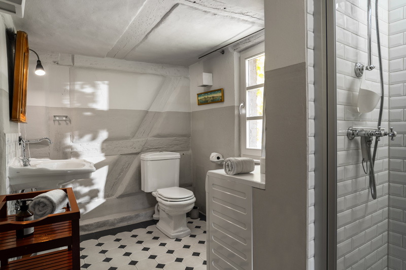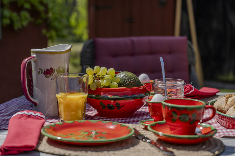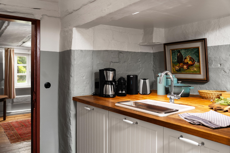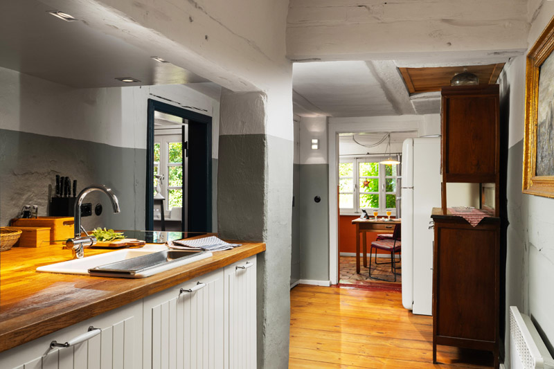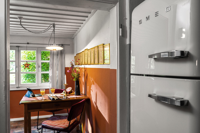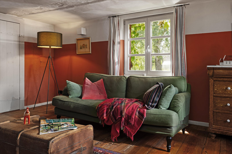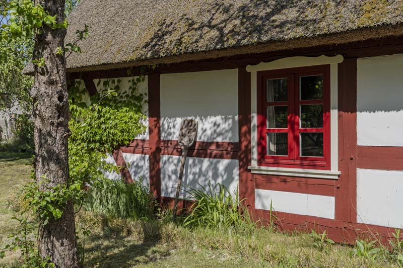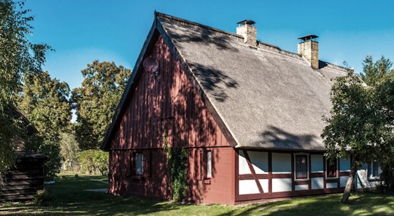 Die Geschichte des Hauses geht bis in die Schwedenzeit Pommerns zurück. In der Mitte des 18. Jahrhunderts ließ Friedrich der Große in Pommern Kolonisten ansiedeln, die das Land urbar machen sollten. Viel Schönes am und im Haus erinnert noch an diese Zeit. Von Anfang an war uns wichtig, so viel wie möglich des besonderen Charmes des Roten Schweden zu erhalten. So konnten bei der Instandsetzung des Hofs im Jahr 2011 sowohl das Reetdach des Haupthauses als auch das reetgedeckte Scheunendach vollständig erneuert werden. Die rückseitige Fachwerkfassade wurde freigelegt und erinnert heute wieder an die Handwerkskunst vergangener Zeiten. Die Holz- und Backsteinfassade erhielten einen frischen, schwedenroten Anstrich. Im Haus wurden die Lehmwände neu verputzt, die Dielenböden von alten Lackschichten befreit und anschließend geölt, sämtliche Elektroinstallationen auf den neuesten Stand gesetzt, und ein helles, mit marokkanischen Zementfliesen ausgestattetes Duschbad eingebaut. Die seltene historische Esse wurde mit einer modernen, zeitgemäßen Küchenzeile ausgestattet.