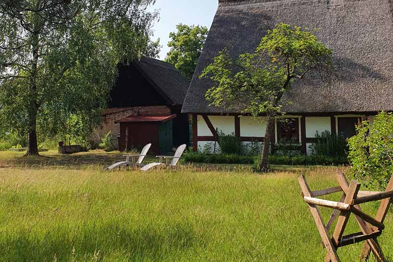 Unser Ferienhaus Roter Schwede mit seinem besonderen Charme, den individuell ausgestatteten Räumen mit antiken, zum Teil noch im Original erhaltenen und liebevoll restaurierten Möbeln wird Sie begeistern. Die leicht unregelmäßige Struktur der mit Hand verputzten Lehmwände, der Duft und die Maserung der geölten Dielen und die in Würde gealterten Fachwerkbalken sind nicht nur für Freunde historischer Gebäude etwas ganz Besonderes. Im großen, komplett umzäunten Garten, der neben der mit Teakmöbeln ausgestatteten Sonnenterrasse diverse andere Rückzugsorte bietet, kommen die Liebhaber eines naturnah und liebevoll gestalteten Gartens voll auf ihr Kosten. Und die hintere Gartenpforte führt auf verschlungenen Pfaden zu einem versteckten Naturlehrpfad und Radwanderweg, der Sie fernab der befahrenen Straßen durch die Ueckermünder Heidelandschaft in die nahegelegenen Nachbarorte des Riether Winkels führt, nach Ludwigshof und weiter nach Rieth ans Wasser.