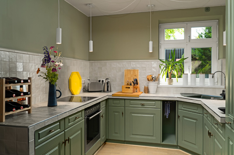 - mallorquinische Zellige-Fliesen in Küche und Bädern